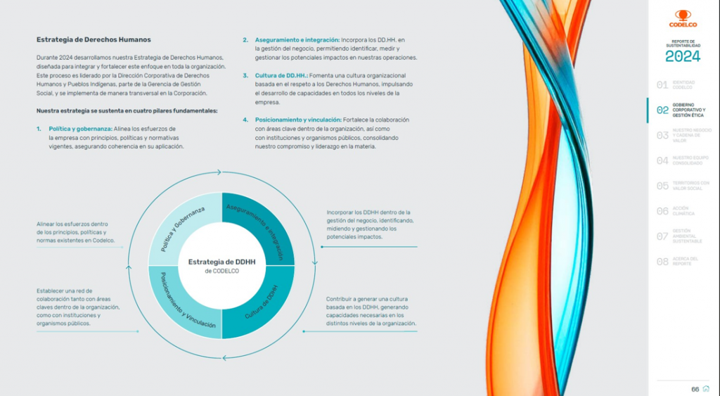 Esta iniciativa muestra que la sostenibilidad es el único camino posible para las industrias, y ello sólo se consigue si se transita con pleno respeto a los DDHH. En menos de un año Codelco no solo diseñó una Estrategia de Derechos Humanos integral; la implementó con gobernanza robusta, integración en la gestión, formación masiva y exigencias a toda la cadena de valor. Hicimos en meses lo que a otras empresas les toma años, elevando los estándares de la industria y posicionando a Codelco como referente en sostenibilidad y respeto a los DDHH. Cuando Codelco lidera el cambio, toda la industria avanza.