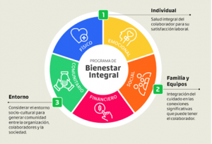 Este programa contempla cinco dimensiones de bienestar: físico, emocional, social, financiero y comunitario. Hasta 2020, las dimensiones principales eran físico, financiero y social. Durante la pandemia, el bienestar emocional se volvió prioritario, y en 2023 se incorporó el bienestar comunitario. En 2025, hemos consolidado objetivos de transversalidad y sustentabilidad en nuestras iniciativas.