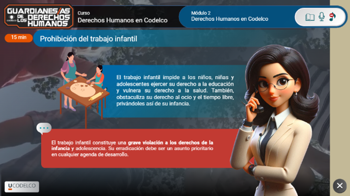 Las compañías también pueden liderar educando y capacitando a la fuerza de trabajo, incluidos los trabajadores de las operaciones integrales y en las comunidades circundantes, y centrándose especialmente en los grupos vulnerables, incluidas las mujeres, los jóvenes y las personas con discapacidad, para que adquieran las habilidades necesarias para proporcionar trabajo productivo o la transición del trabajo informal al sector formal.